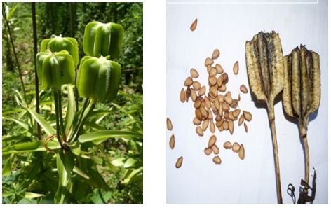 While comparing the results of different growing media on floral and seed characteristics of Fritillaria imperialis L., astonishingly to our results the impact of treatment T11 (1 Soil +1 Sand + 2 Forest litter) was significant in influencing the floral and seed attributes of Fritillaria imperialis L. viz., days to floral bud emergence, days to flower opening, number of florets/plant, inflorescence diameter, floret diameter/length, days to senescence, presentability and seed set (Table 2). The sturdy growth and vigour of the crop were recorded among the treatment having more Forest litter (T11). The tendency of more vigoursity increases with increased partiality of shade. The results reflect the fact that the crop Fritillaria imperialis L. is more adapted to grow freely under its corresponding natural habitat and climate conditions. The results indicated the crop specificity towards the edaphic conditions. The improved results of floral and seed parameters are reflected to the fact that the organisms (especially geophytes) are more responsive when subjected to the natural culturing media (Forest Soil), this perhaps might be due to the complex physiological and chemical interaction between the underground growth and the composition of the active ingredients present within the potting/culturing media. The complexity of bulb physiology and mechanism of its corresponding interaction with the growing media need to be discussed and elaborated further.