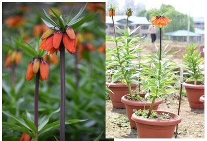 Fritillaria imperialis L. is by far the most well-known species and the most impressive perennial bulbous flowering plant. It is native to locations such as Turkey, Iraq, Iran, Afghanistan, Pakistan and Himalayan foot hills including Kashmir valley [10]. Crown imperial reaches up to 100-110cm tall with a thick, stout, upright, ramrod-straight flowering stem bearing lance-shaped, glossy leaves with wavy margins around the lower half of the stem. Each stem is topped by spectacular clusters of orange, yellow or red pendant bell shaped flowers with a crown of small leaves. The common name, tears of Mary refers to the drops of nectar at the base of each petal, Christian tradition tells that of all the flowers, only the proud crown imperial refused to bow its head at the crucifixion it has bowed and wept ever since. The flowers emit a distinctly foxy smell that's reputed to repel mice and moles.