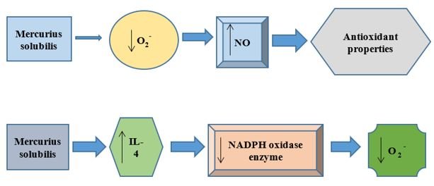 Mercurius solubilis has been shown to alter macrophages function, by increasing the production of IL-4, IFN-γ, NO, H2O2 and probably ONOO-4.