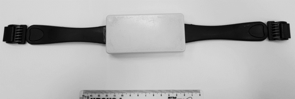 Figure 2: The chest strap control box with the two rubber electrodes on both sides.