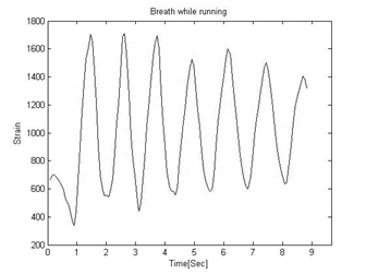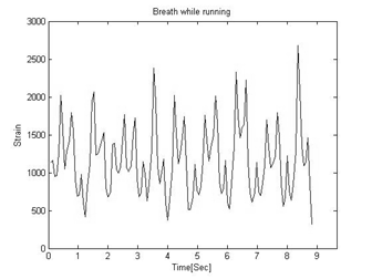 Signal processing algorithmThe running vertical impacts are sensed by the chest strap adding strain surges to the breathing signal.