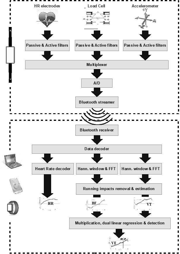 Presently the VE is recorded by the Gold Standard Cardio-Pulmonary Exercise Test – CPET system [31] – a cumbersome and expensive equipment that provides excellent information about the individual VAT, though, under laboratory setting. As this “point” may shift to the right with training, an outdoor device is required that will allow real-time, continuous measurement of the ventilatory threshold, that will result in more efficient training and CRF improvement.